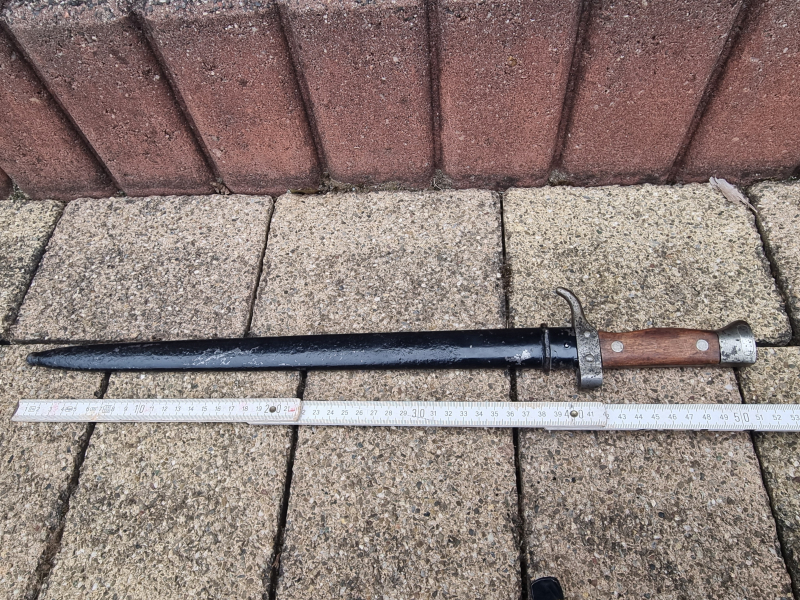 ZUM VERKAUF KOMMT EIN BAJONETT MIT SCHEIDE. GETRAGENER ZUSTAND MIT GEBRAUCHSPUREN UND TRAGESPUREN SIEHE BILDER. ABGABE NUR AN PERSONEN ÜBER 18JAHRE.
