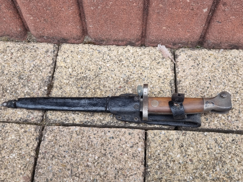 ZUM VERKAUF KOMMT EIN BAJONETT KAMPFMESSER. GETRAGENER ZUSTAND MIT GEBRAUCHSPUREN UND TRAGESPUREN, SCHEIDE DEFEKT. ABGABE NUR AN PERSONEN ÜBER 18JAHRE.