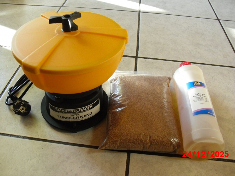 Hallo ich biete zur Auktion 1 Tumbler Nano 1,4 Ltr. Inhalt Neuwertig ca.8 Std. gelaufen mit Garantieschein und Rechnung,in OVP.Für kleinere Mengen an Hülsen ca. 150 St.45 Auto Mag. oder 80 St.458 Win. mit dabei 1Kg.Walnusschalengranulat,1 Ltr. Messing u. Kupferreiniger.Betrieb 220 Volt. Versicherter Versand mit Hermes.