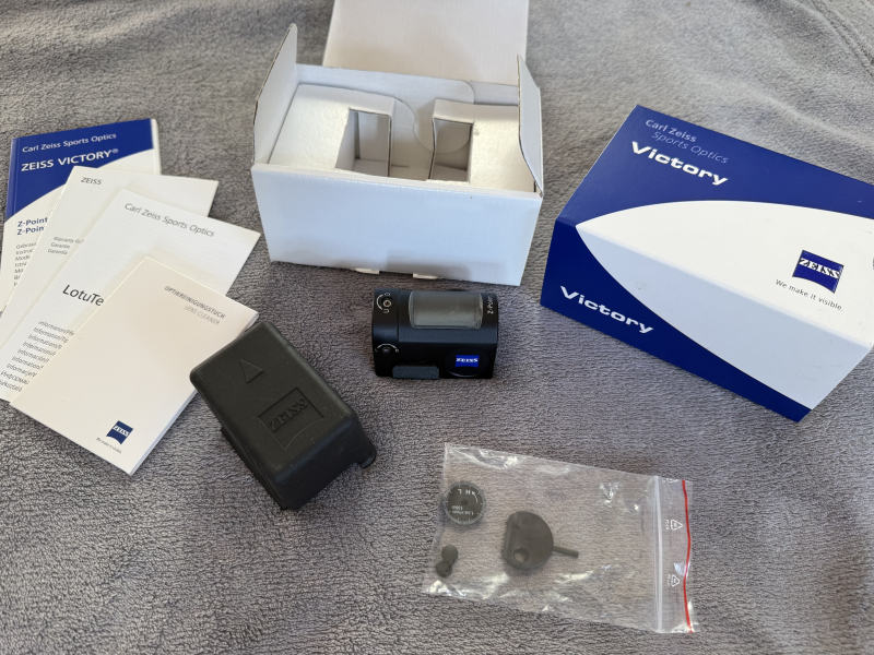 Sie bieten hier auf ein Zeiss Z-Point Reflexvisiers, passend für Picatinny Schiene. Wurde für die Sammlung gekauft und niemals verbaut. Es befindet sich deshalb in einem neuwertigen Zustand, Linsen ohne Kratzer etc. und es ist voll funktionsfähig. Inklusive Originalverpackung, Schutzcover, Bedienungsanleitung und dem Zubehör. Bei Fragen einfach mailen.