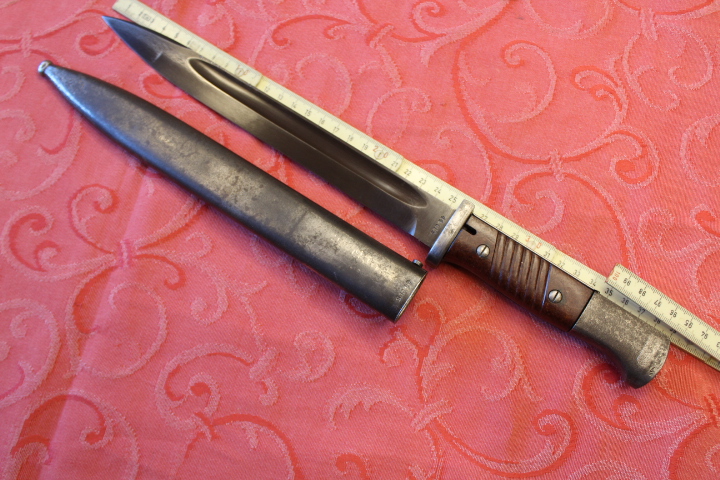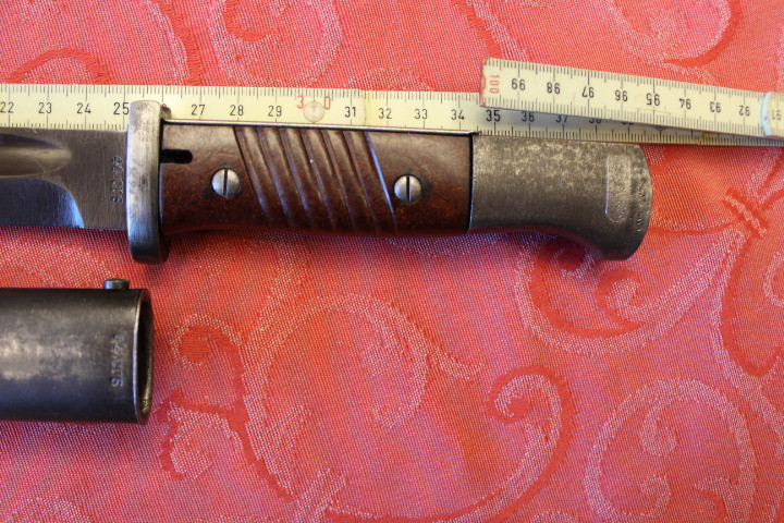 Im Fundzustand. Nicht für die Auktion irgendwie geschönt. Noch nicht Gereinigt. Der Drücker ist Leichtgängig . Komplett Original. Die Scheide und das Bajonett haben den selben Hersteller und Seriennummer. Zustand siehe die Bilder. Porto EU= 19,50€ ###########################################################################################################################################################################################################################################################################