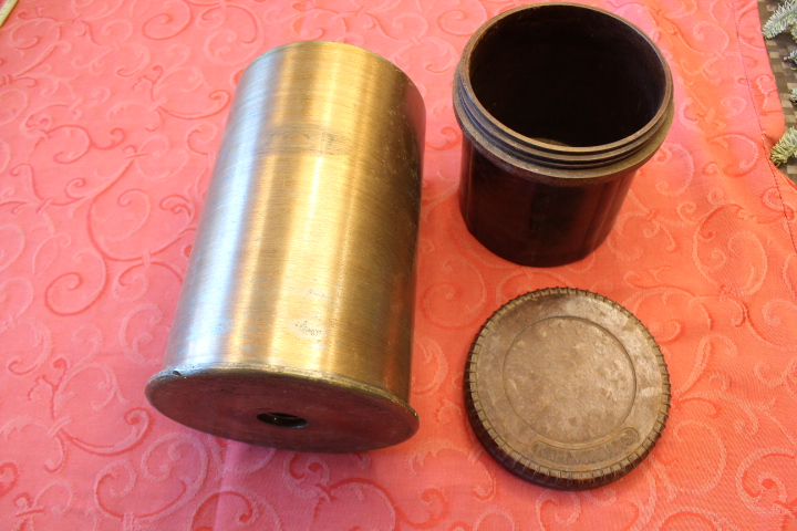 Kartusche mit Pulverbehälter, Kartuschvorlage. Keine Risse und keine Beulen.Noch nicht gereinigt. Kein Rost. Porto EU= 19,50€