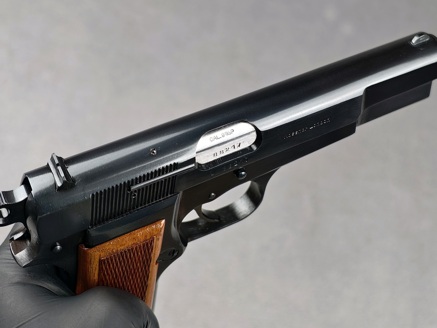 Die Pistole ist vollständig nummerngleich mit der Seriennummer 88217! (Rahmen, Verschluss/Schlitten, Lauf)