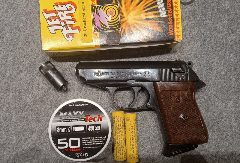 Zur Auktion biete ich eine voll funktionsfähige Röhm RG 800 aus dem Jahr 1987 (Beschuss "IH"), inklusive dem original Röhm Abschussbecher, der noch original verschlossenen Dose mit 50 Stück der 8 mm Platzpatronen "MaxxTech" von der Firma Pobjeda in Bosnien Herzegowina und die abgebildeten 20 Stück „Jet Fire“ „Cracker-Sirenen“. Die Röhm RG 800 ist ein Nachbau der scharfen Walther PPK und ist für Ihre hohe Qualität aufgrund der vielen verbauten Stahlteile bekannt. Insbesondere sind der komplette Lauf, der gesamte Hahn und der Stoßboden aus massivem Stahl gefertigt, was die Pistole extrem langlebig macht. Mit den MaxxTech-Kartuschen von der Firma Pobjeda habe ich eine andere Röhm RG 800 geschossen, womit dieses Exemplar einwandfrei und ohne Klemmer repetiert hat. Die Pistole habe ich gründlich gereinigt und geölt und der Trockentest funktioniert tadellos. Den optischen Zustand der Waffe (nach all den Jahren sind natürlich ein paar Gebrauchspuren vorhanden) können Sie den Fotos entnehmen, welche auch Bestandteil der Beschreibung sind. Nach Eingang des Kaufpreises sowie einer Kopie Ihres Altersnachweises, versende ich umgehend mit DHL als versichertes Paket mit Übermittlung der betreffenden Sendungsnummer. Wenn Sie mit PayPal bezahlen, versende ich das Paket via DHL-Packstation noch am selben Tag, womit Sie dieses schöne Set höchstwahrscheinlich noch pünktlich zu Silvester erhalten sollten. Hinsichtlich des Schießens mit Schreckschusswaffen an Silvester sind jedoch zwingend die allgemeinen gesetzlichen und insbesondere die waffenrechtlichen Vorschriften zu beachten. Da ich eine Privatperson bin, schließe ich eine Sachmängelhaftung und Gewährleistung aus. Bitte bieten Sie nicht, wenn Sie hiermit nicht einverstanden sind. Dann wünsche ich viel Erfolg beim Bieten; lassen Sie sich dieses schöne Set nicht entgehen!