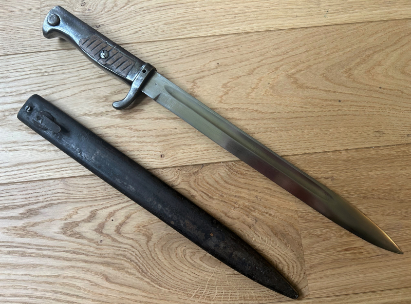 Ich biete ein recht seltenes deutsches Ersatzbajonett in sehr gutem Zustand an. Ein Bajonett dieses Typs in besserem Zustand zu finden, ist nahezu unmöglich. Es befindet sich seit über 15 Jahren in meiner Sammlung und wurde ursprünglich von Sean Gibson erworben. Sollten Sie weitere Fotos benötigen oder Fragen haben, kontaktieren Sie mich bitte vor dem Kauf. Der Versand innerhalb der EU kostet 30 € und ist voll versichert. Für Versandkosten außerhalb der EU erfragen Sie diese bitte vor dem Kauf.