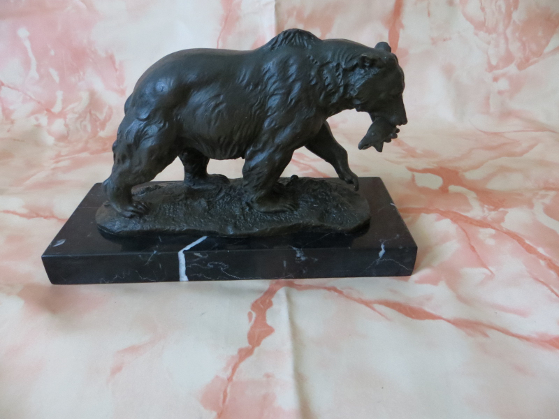 Bronze Plastik Grizzlybär mit Lachsvon MILO