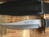Ich biete ein Muela Bowie Messer im augenscheinlich unbenutzten Zustand an!Das Messer hat eine Gesamtlänge mit dem Zollstock gemessen von 29,8 cm,die Klingenlänge beträgt 17,4 cm.Sie hat an einer kleinen Stelle Rückstände wahrscheinlich von einem Aufkleber,Lagerspuren sind im Licht erkennbar.Ich bin kein Experte aber ich gehe davon aus das mit dem richtigen Öl es kein Problem ist dies zu beseitigen.Die Muela Scheide und die OVP,ist nicht mehr die schönste,sind dabei.Ein insgesamt sehr schöner Gesamtzustand.