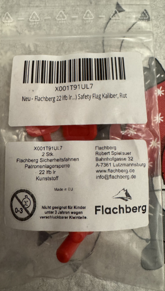Sie bieten auf eine neue Sicherheitsfahne / Patronenlagersperre von Flachberg für das Kaliber .22lr.