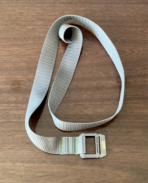 Grauer Gürtel von Merkel Gear mit Metallverschluss, Geamtlänge ca. 120cm.