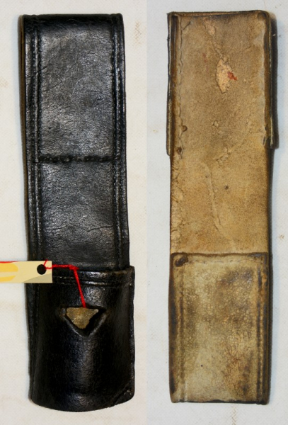 Französischer Koppelschuh, Verwendung unbekannt, ev. für Berthier Bajonett, außen geschwärzt - innen Natur belassen, keine Stempelung, Länge 22cm, guter Zustand mit leichten Gebrauchsspuren