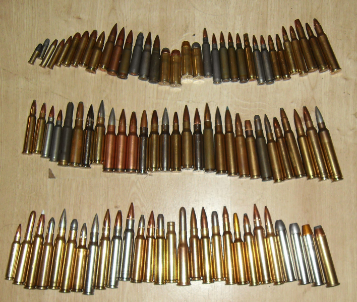.22lfb Nickelhülse Bleigeschoss, dto. Messinghülse, .22Magnum Teilmantel, dto. Vollmantel, dto. Hohlspitz, .30 Carbine (Vollmantelrundkopf), dto. Teilmantel Hohlspitz, 8X33 (Vollmantelgeschoss), .17 Hornet Solid Hohlspitz, 5,45X39 AK74 Vollmantel, .222Remington Teilmantel, dto. RWS Match Hohlspitzgeschoss, dto. Sierra Hohlspitzgeschoss, .223 Remington Messinghülse (Vollmantelgeschoss), dto. Stahlhülse blank, dto. Stahlhülse grau,dto. Stahlhülse grün lackiert, .223Rem. Messinghülse Hohlspitzgeschoss, dto.Stahlhülse Blank, dto. Stahlhülse Grau, dto. Stahlhülse Grün lackiert, .223 Remington (Messinghülse, Teilgeschoss), dto. Stahlhülse blank, dto. Stahlhülse Grau, dto. Stahlhülse Grün lackiert, .223 Rem. Messinghülse RWS Matchgeschoss Hohpspitz (große Hohlspitze), , 5,6X50 R Magnum Vollmantelgeschoss, dto. Teilmantelgeschoss, .22-250 Remintgon Messinghülse Hohlspitzgeschoss, 7,62X39 AK47 Kalaschnikov Messinghülse, Vollmantel, dto. Stahlhülse Grau, dto. Stahlhülse Grün lackiert, dto Stahlhülse Braun lackiert, dto. Stahlhülse grünes Kurzbahngeschoss Rundkopf , 7,62X39 Paltzpatrone, .308Win. (Vollmantel Tombak), , dto. Stahlhülse verkupfert. dto. Sierra Match King / Hohlspitz, dto. Vernickelte Messinghülse, , dto. Teilmnatel Messinghülse, dto. Vernickelte Messinghülse, dto verkupferte Stahlhülse. .308Win. Verzinntes Flußeisengeschoss Messinghülse, dto verkupferte Stahlhülse, dto. Vernickelte Messinghülse, .308Win. Messing Platzpatrone, .243Winchester A-max Geschoss (verdeckte Hohlspitz), dto. Teilmantel, , .303 British Vollmantelgescoss, dto. Teilmantel, 6,5X55 verzinnte Teilmantel, dto. Teilmantel Näpfchen / HP, dto. Verzinntes Vollmantelgeschoss dto H&N verkupfertes Geschoss, 8mm Charchiano Vollmantel RK, 7,65 Argentino Teilmantel, 7,65X65 Vollmantel Flachkopf, 6,5X57 verzinntes Teilmantelgeschoss, 7X64 A-Max verdeckes Hohlspitzgeschoss, dto. TIG Jagdgeschoss verzinnter Teilmantel, dto. Tombak Teilmantel, 7X57TIG Jagdgeschoss, dto. Verzinnter Teilmantel, 7X57R Teilmantelgeschoss, dto. Leichtes Teilmantel Jagdgeschoss, 7X64 Teilmantel, 7X65R Kegelspitzgeschoss, 8X57JS (Vollmantelgeschoss), dto. Stahlhülse, 8X57JS verzinntes Teilmantelgeschoss Rundkopf, dto. Stahlhülse8X57JRS Vollmantelgeschoss, dto. Verzinntes Teilmantelgeschoss, .30-06 Springfield (Vollmantelgeschoss mit Crimprille), dto. Stahlhülse, dto. Hohlspitzgeschoss, dto. .30-06 Springfield verzinntes Flußeisen Messinghülse, dto. Stahlhülse, dto. Messinghülse Teilmantel, dto. H-Mantel Teilmantel Kegelspitzgeschoss, dto, leichts Bleigeschoss RK mit Gas Check.30-06 Messing Platzpatrone, .45-70 Teilmantel-Hohlspitzgeschoss, dto. vernickelte Messinhülse, Blei Flachkopf mit Gas Check,dto. Vernickelte Hülse, dto. H&N verkupfertes Flachkopfgeschoss Kunststoffbeschichtet, dto. Vernickelte Hülse, .45-70 Government schwere Teilmantel Rundkopfgeschoss, .300WinMag Vollmantelgeschoss, dto. Hohlspitzgeschoss Sierra Match, dto. verzinntes Flusseisen, dto. Teilmantel, Nagant 1928 verzinntes Flußeisen Rundkopf,