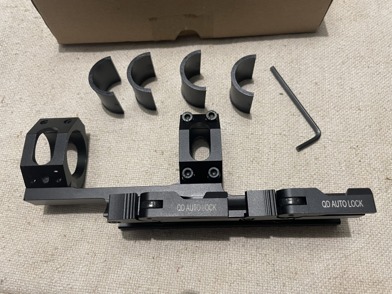 Biete neuwertige Zielfernrohrmontage mit Schnellverschlüssen (QD) welche sauber einrasten und einstellbar sind im Widerstand. Montage wohl aus hochwertigem Alu, extrem robust und leicht nur 211 Gramm!! Wiederholgenauigleit ist Top, war für kurze Zeit auf AR15 montiert, einwandfreie Montage. 30mm Rohrdurchmesser mit Reduzierringen falls ein Glas mit kleinerem Durchmesser verbaut werden soll. Die seitliche Verschraubung der Ringe erinnert am Spuhr Montagen. War nur kurz zum testen montiert, einen Wettkampf damit geschossen, tolle Montage! Da ich keine zugehörige Waffe mehr habe verkaufe ich auch die Montage. Hersteller leider nicht bekannt. Es war ein Glas mit 50er Objektivdurchmesser montiert. Das hatte gut gepasst. Bauhöhe 22mm Denke ich, Achshöhe (Mitte Rohr bis OK Picatinnyschiene) ca.40mm, ich habe nicht die Möglichkeit es genauer zu messen. Weitere Bilder kein Problem einfach anschreiben. Verkauf unter Ausschluss jeglicher Gewährleistung usw. Privatverkauf! Artikel absolut in Ordnung und wie beschrieben! Neuwertig.