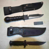 Zustand der Messer und Scheiden: gebraucht mit sichtbaren Spuren. Könnten auch eine Reinigung gebrauchen.