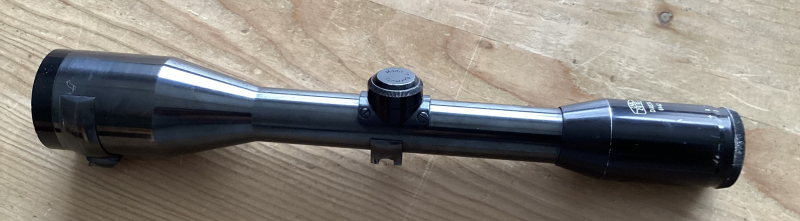 mit Absehen 1. Made in Germany. Stahlkörper mit 26mm Mitteltubus Länge ca. 31,5cm , Linsen sind ohne Kratzer oder Putzschlieren, kein Belag oder Pilze. Mechanik ist gängig. Absehen ist zentriert, mit Höhenverstellung.
