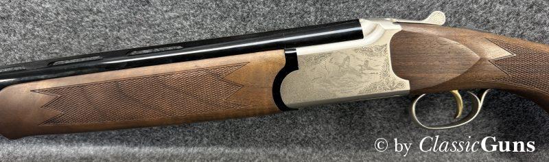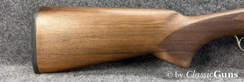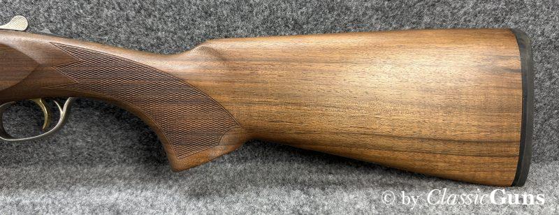 Gesamtlänge 1.160 mm, Schaftlänge 380 mm, Lauflänge 710 mm (oben ½ und unten ¾ Choke), Gewicht 3,60 kg. Basküle aus geschmiedetem Stahl, umschaltbarer Einabzug, automatische Sicherung, Ejektoren, Chokes wechselbar. Neutrale Schäftung aus hochwertigem Nussbaum.