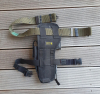 Taktisches Drop-Leg Holster aus schwarzem Cordura für HK Mk23 SOCOM mit höhenverstellbarem Beinriemen, Militärkoppelbefestigung und langer Seitentasche für Schalldämpfer / Ersatzmagazin. Durch die zusätzliche Klappe ist das Holster Airborne – jumpable. Es paßt wie auf den Bildern zu sehen auch für Desert Eagle Pistolen. Hergestellt von London Bridge Trading / USA. Das Holster ist unbenutzt und der Neupreis liegt bei über $300.—Privatverkauf.