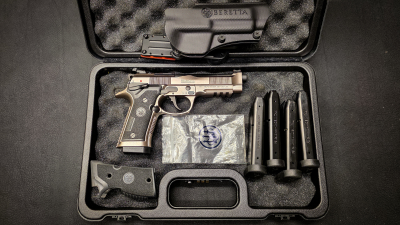 Zum Lieferumfang gehören neben der Pistole ein originales Beretta Kydex-Holster, Wechselgriffschalen, insgesamt fünf Magazine sowie das Verstellwerkzeug. Eine sehr umfangreiche und attraktive Ausstattung.
