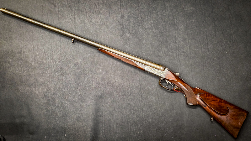 Die Läufe haben eine Länge von 755 mm. Innen sind sie stellenweise rauh, der Verschluss schließt jedoch dicht. Chokebohrung: rechter Lauf 3/4 Choke, linker Lauf Vollchoke. Insgesamt eine klassische, elegante Jagdflinte mit ehrlicher Patina und solider Substanz.