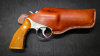 Montiert sind die originalen S&W-Holzgriffschalen, die für ein angenehmes Handling und ein klassisches Erscheinungsbild sorgen. Zum Lieferumfang gehört außerdem ein Bucheimer-Lederholster in Braun, passend zum Revolver.