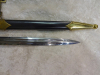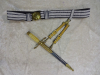 Schönes komplettes Ensemble eines Fregattenkapitän der Volksmarine: Vergoldeter Dolch mit nummerierter Klinge und Mühlhausen Logo. Dazu die Parade Feldbinde, marineblau unterlegt, sowie das vergoldete Gehänge. Dolch ungeputzt belassen. Originalität wird zugesichert. In weiteren Auktionen die Uniformstücke des besagten Fregatten Kapitäns. Privatverkauf.