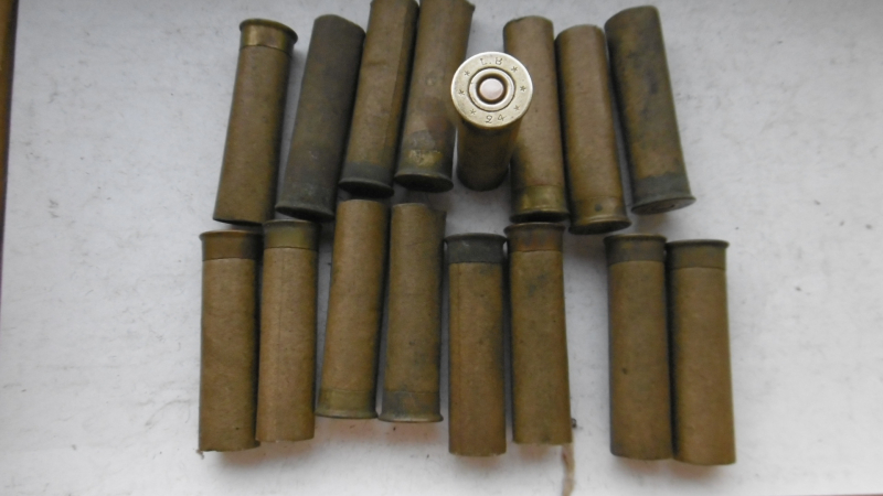 Angeboten werden 16 leere, ungebrauchte Schrothülsen Kal. 24. Bodenstempel: L.B. 24 und 6 Sterne, eine Fertigung von Louis Bachmann in Brüssel Die Hülsen lagerten auf dem offenen Dachboden der Büchsenmacherei ERDELT in Neustadt/Haardt (Weinstraße). 100 Jahre Schmutz habe ihre Spuren hinterlassen die noch zu entfernen sind.
