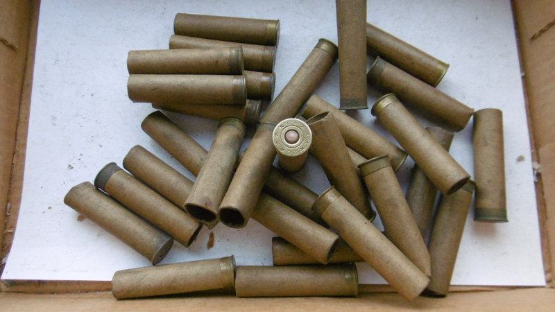 Angeboten werden 31 leere, ungebrauchte Schrothülsen Kal. 28. Bodenstempel: L.B. 28 und 6 Sterne, eine Fertigung von Louis Bachmann in Brüssel Die Hülsen lagerten auf dem offenen Dachboden der Büchsenmacherei ERDELT in Neustadt/Haardt (Weinstraße). 100 Jahre Schmutz habe ihre Spuren hinterlassen die noch zu entfernen sind.