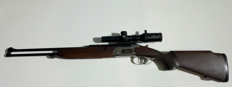 Tikka Bockdoppelbüchse 512S im Kaliber 9,3x74R mit GPO Spectra 6i 1-6x24i G4i Diese hochwertige Bockdoppelbüchse ist ideal für die Drückjagd. Das Modell Tikka 512S überzeugt durch solide Verarbeitung und zuverlässige Mechanik. Das bewährte Kaliber 9,3x74R bietet hohe Stoppwirkung und ist bestens geeignet für starkes Schalenwild. Die montierte Optik, ein GPO Spectra 6i 1-6x24 mit G4i-Absehen, ermöglicht eine schnelle und präzise Zielerfassung auf kurze Distanzen. Die Montage ist stabil und jagdlich erprobt. Die Waffe befindet sich in gepflegtem Zustand und ist sofort einsatzbereit.