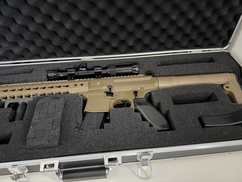 Luftgewehr SIG SAUER MCX Dark Earth Co2-Gewehr 4,5 mm Diabolo (P18) + Zielfernrohr + 5 x 88 Gramm Co2-Kapseln TOP ZUSTAND. Lieferung ohne Koffer. Zielfernrohr inklusive.