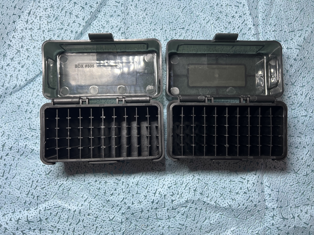 2x Frankford Arsenal #505 Munitionsbox mit Scharnierdeckel - .204Rug, .223 Rem, .300BLK - 50 Stück