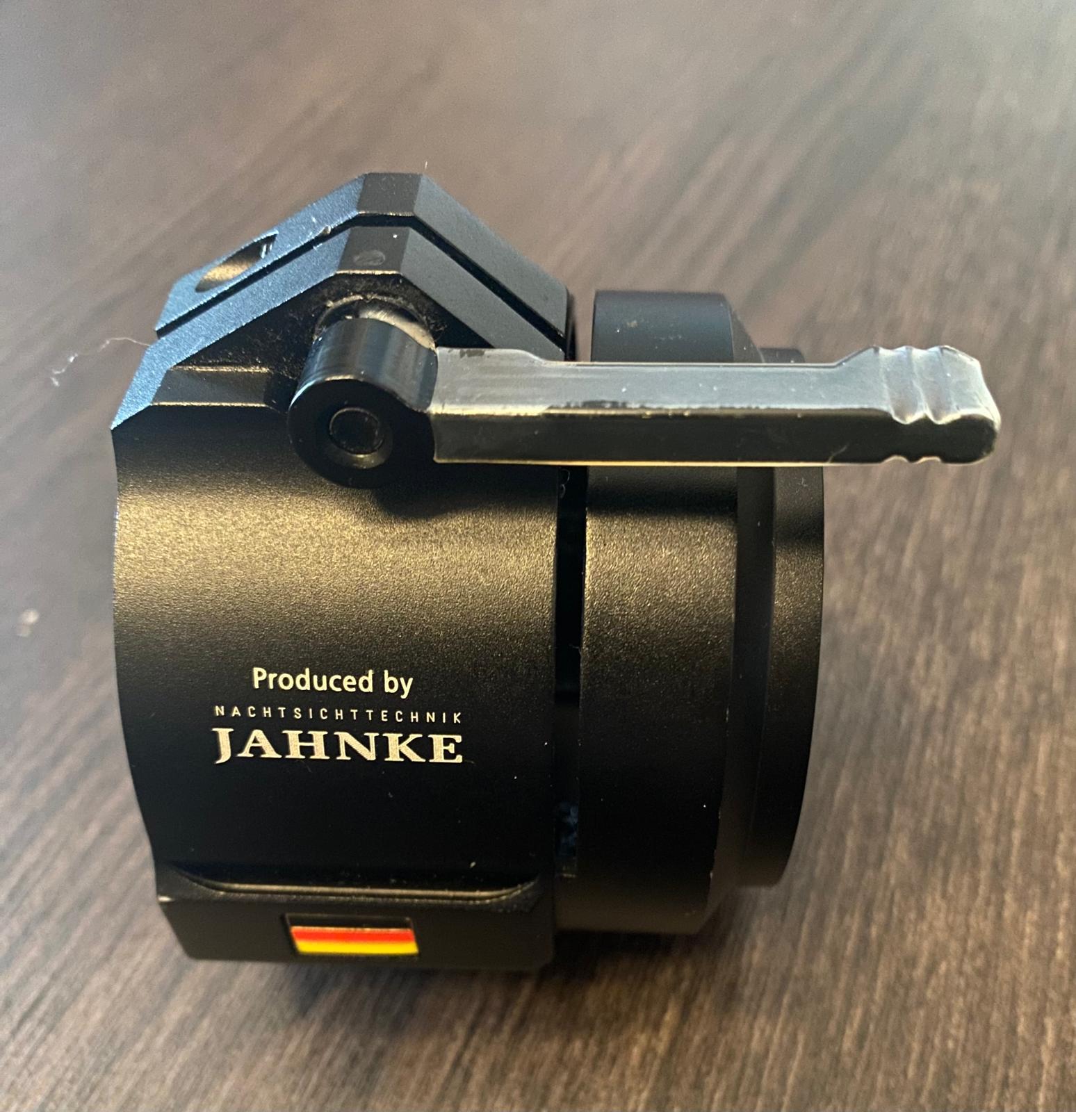 Angeboten wird ein kaum benutzter Adapter für Jahnke DJ-8 Nachtsichtgeräte, passend für 56er Objektivdurchmesser (Durchmesser am Klemmring 62mm). Voll funktionsfähig und minimale Gebrauchsspuren- siehe Foto. Viel Spaß beim Bieten.