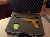 Weihrauch HW70 Luftpistole vermutlich aus den 70ern. Noch das alte wertige Design mit goldenen Emblemen und ohne Sicherung. Hatte die Pistole selbst gebraucht gekauft, gereinigt, durchgeölt und mit einer neuen Laufdichtung versehen. Schussleistung 115 bis 120m/s mit beiligenden Diabolos. Der Griff hat an einer Schraube einen leichten Riss, die Kimme hat einen Schaden, Benutzbarkeit aber nicht eingeschränkt (gibts auch noch neu zu kaufen, mit ein bisschen Glück auch das Kimmenblatt einzeln). Die Brünierung ist noch sehr schön, hat aber hinten am Verschluss des Systems einen Kratzer (Kolbendichtung gewechselt?!?!) Manchmal rastet der Lauf nach dem Spannen nicht sofort ein, keine Ahnung woran das liegt, eventuell doch noch irgendwo doch noch was verharzt (die hat wohl jahrzehntelang irgendwo gelegen). Versand 10 Euro inkl. Altersichtprüfung