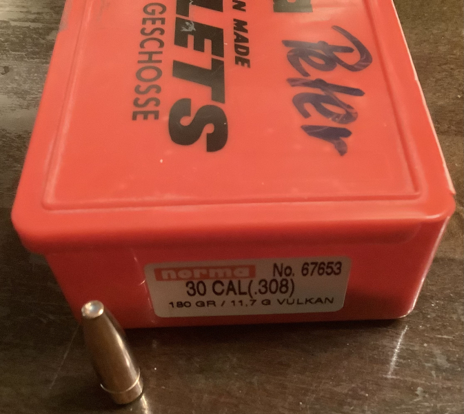 Verkaufe 78 Geschosse Norma Vulkan im Kaliber .30 mit 180 grain Geschossgewicht.
