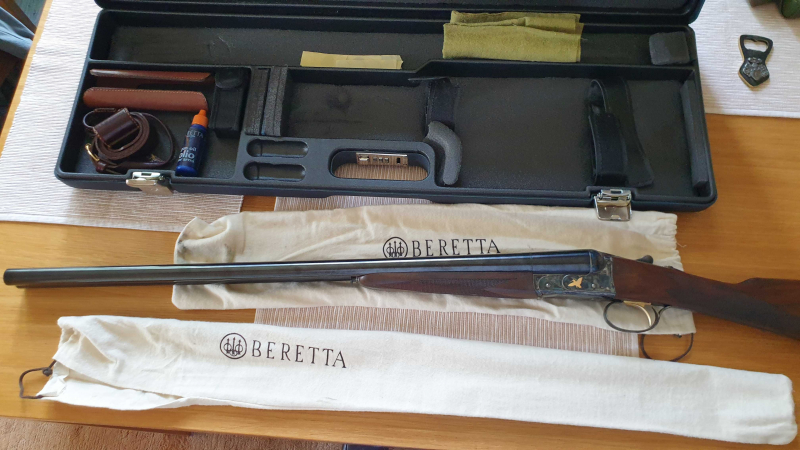 • Klassische Fischhaut nach englischem Muster, inkl. original Beretta Transport- und Verwahrkoffer aus Fasermaterial.