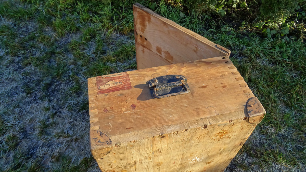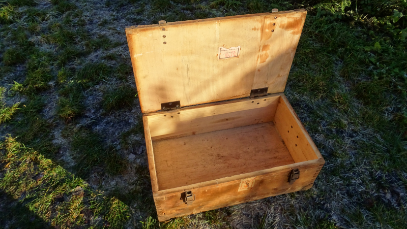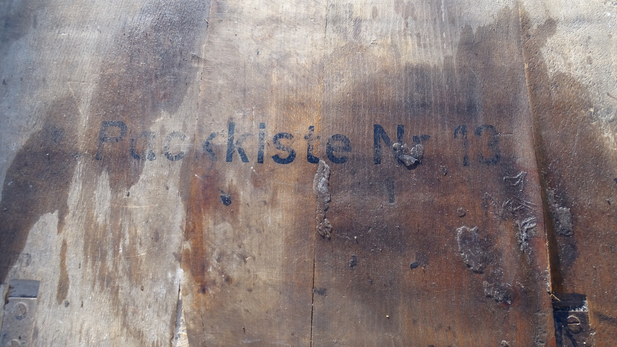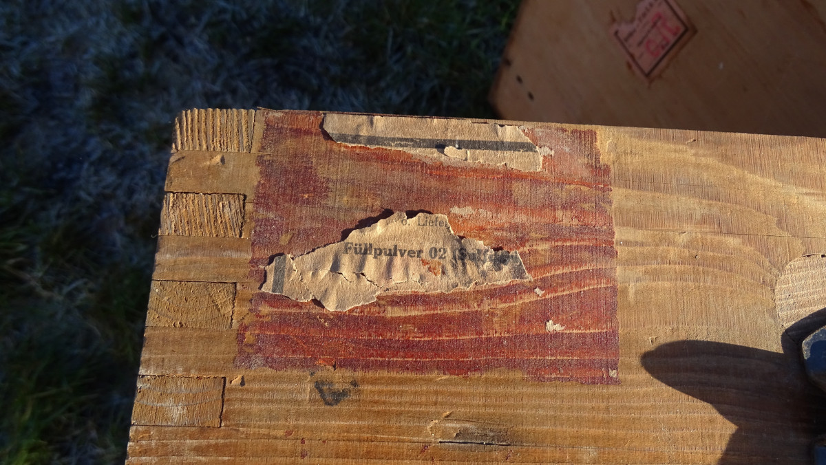 Hier wurde eine selterne Packkiste Nr.13 für den Transport der explosivstoffe verwendet.