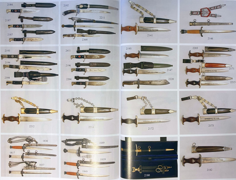 Im einzelnen sind abgebildet: Orden- & Ehrenzeichen (Ausland, Kaiserreich, KuK sowie 2. Weltkrieg), Blankwaffen, Dienstdolche SA & SS, Langwaffen, Rüstungen, Schußwaffen, Reservistika, Antikes, Helme, Schirmmützen, Pickelhauben, militärisches Spielzeug und vieles mehr.