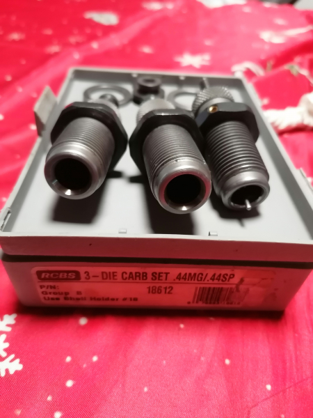 Biete hier einen RCBS Matrizensatz .44MG/.44SP Group B mit leichten Gebrauchsspuran an. Siehe Bilder. Der Deckel der Schachtel ist an den Schanieren ausgebrochen, hält aber noch geschlossen. Da Privatverkauf keine Garantie, Gewährleistung oder Rücknahme.
