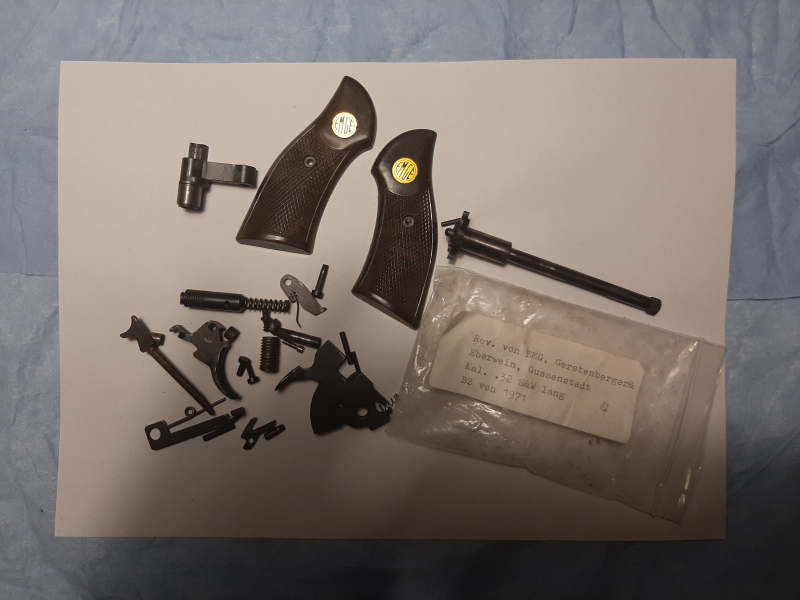 Zum Verkauf stehen diverse Kleinteile und Griffschalen für einen EmGe Revolver im abgebildeten Zustand - selten!-
