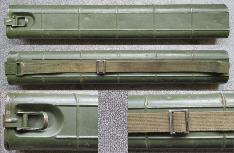 Biete hier diesen originalen Doppellaufbehälter 34 der Wehrmacht für das MG34 an, komplett mit Web-Trageriemen, gestempelt mit dem Herstellercode „bxt“ ( Firma Hackethal Draht und Kabelwerke AG, Stader Landstrasse 69, in Hannover / Brink ) sowie darunter mit WaA-Abnahme. Der Behälter fasst 2 Reserveläufe für das MG34, die Läufe für das MG42 passen auf Grund ihrer Bauform nicht hinein. Der originale Bakelit-Stoßdämpfer ist an der Innenseite des Deckels angenietet und auch ebenfalls mit einer schönen Herstellermarkierung versehen, siehe dazu bitte auch das letzte Foto. Maße circa: 66x10x5,5cm, insgesamt sehr guter Erhaltungszustand, wohl nach dem Krieg schon einmal überlackiert, siehe Fotos, Fragen hierzu gerne per email. Allen Bietern viel Erfolg !