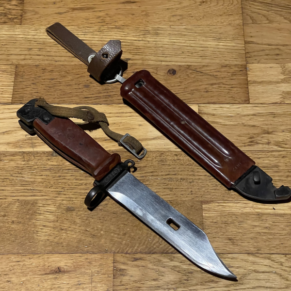 Original Russian AKM/SVD bayonet 6H4 type 2. Made by IHZEVSK. Serial 607. All correct markings. Good used.