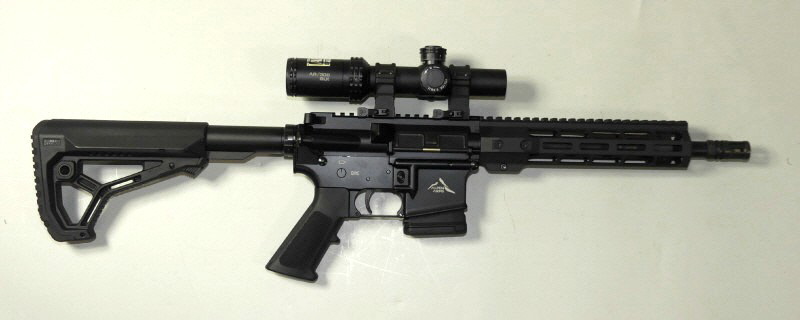 Wir bieten Ihnen hier im Kundenauftrag eine in Österreich von Alpen Arms gefertigte AR 15 Variante mit dem Namen STG 15, im Kaliber .223 Rem. Es hat einen FAB Defence Schubschaft. Aluvorderschaft, siehe Foto. Durch die Lauflänge von 10,5" ist das Gewehr ultrakompakt. 10 Schuss Magpul Magazin. Mittels schnell abnehmbaren, wiederholgenauen Montageringen wurde ein Bushnell AR ZF 1-4x24 mit dimmbaren Leuchtabsehen montiert. Abschraubbarer Mündungsfeuerdämpfer. Somit lässt sich problemlos ein Schalldämpfer anbringen, wenn gewünscht. Diese Lauflänge kann laut deutschem Gesetz leider nicht an Sportschützen geliefert werden. Bei Fragen tagsüber zur normalen Geschäftszeit: 09231 72900