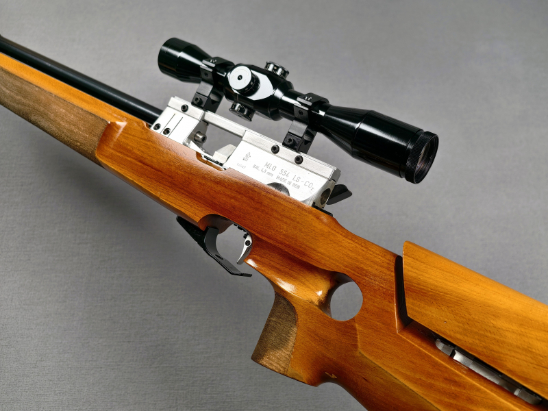 Aus unserer Privatsammlung versteigern mein Sammlerfreund und ich diese Woche ein absolutes Sahnestück - ein Haenel MLG 554 LS-CO2 (#14947) inklusive originalem Zielfernrohr Carl Zeiss Jena ZF 4 x 30,5 -Sport- (#361483). Die gesamte Konstruktion wurde vom Suhler Werk ausgelegt auf die Disziplin "Laufende Scheibe", erkennbar an dem ergonomisch anpassbaren Lochschaft, dem verlängerten Laufmantel mit variablen Gewichten sowie dem Zielfernrohr mit fein einstellbaren Doppelstacheln.