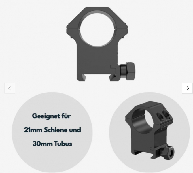 Zielfernohr Montageringe aus hochwertigem Aluminium für 30mm Tubus-Durchmesser und 21mm Schiene