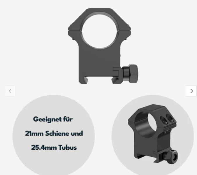 Zielfernohr Montageringe aus hochwertigem Aluminium für 25,4mm Tubus-Durchmesser und 21mm Schiene