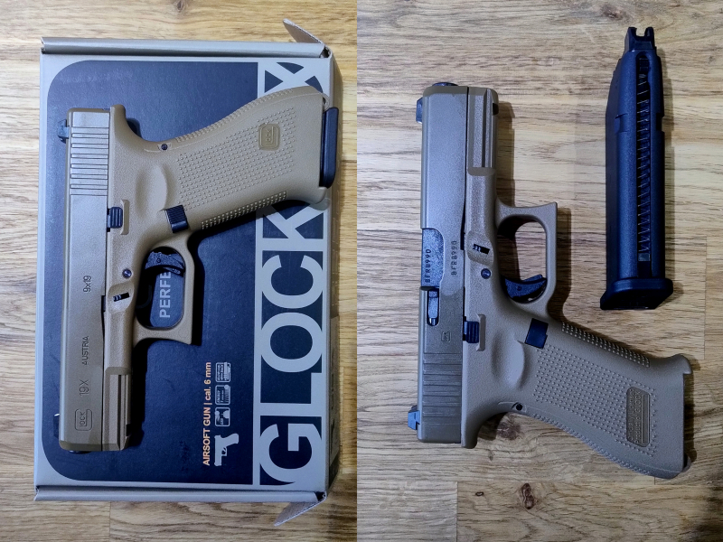 Verkaufe hier eine "gebrauchte" (1A Zustand - sehr selten benutztes Sammlerstück) UMAREX Glock 19X Airsoft mit Metallschlitten GBB 6mm BB Coyote Tan (Magazin in schwarz) in OVP - Lieferumfang wie auf Foto. Technische Daten: Kaliber: 6 mm BB - Magazinkapazität: ca. 22 Schuss Gas-Magazin - Energie: ca. 1,0 Joule - Länge: ca. 190 mm - Gewicht: ca. 620 g - Standartversand mit DHL für 5,50€ ohne Tracking usw. - falls anders gewünscht dann 7,90€ Versandkosten - Bezahlung mit Banküberweisung oder mit PayPal FREUND. Altersnachweis erforderlich! Information für den Käufer - muss laut Gesetzgeber leider sein: Es handelt sich um einen Privatverkauf. Deshalb schließe ich jede Gewährleistung, Rücknahme und alle Schadensersatzansprüche im Zusammenhang mit dieser Auktion und dem verkauften Artikel aus!