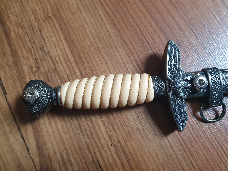 Offiziersdolch der Luftwaffe WK2 ist wahrscheinlich eine Kopie. Der Zustand ist sehr gut! Die Verbotenen Symbole wurden für die Auktion abgedeckt. Der Zustand ist den Bildern zu entnehmen! Verkauf ohne Garantie und Gewährleistung!