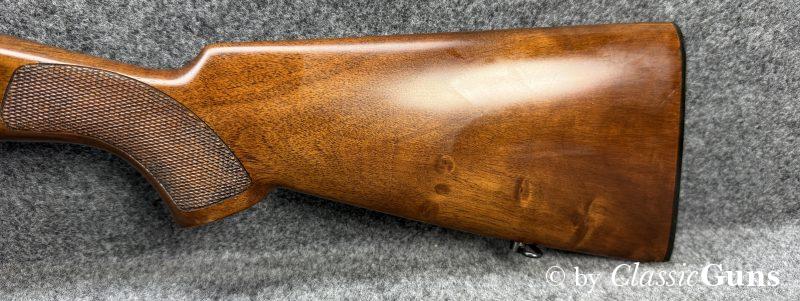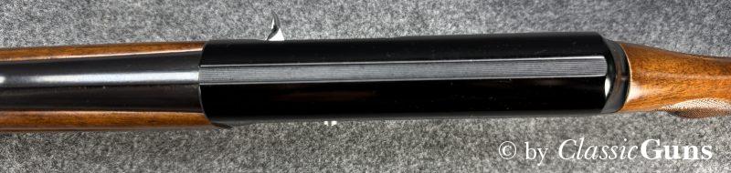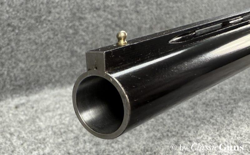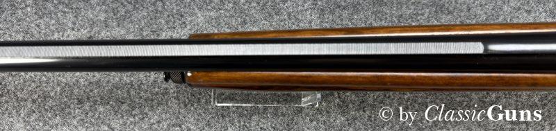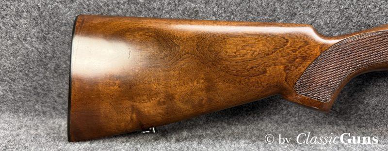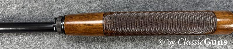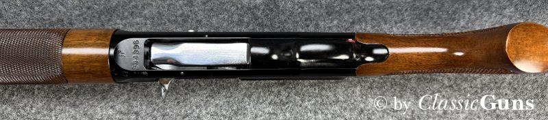 Diese vergleichsweise leichte Waffe zeichnet sich durch ein Rückstoßlader-System mit Drehkopf-Verschluss aus, das als besonders zuverlässig und robust gilt. Systemgehäuse aus eloxiertem Aluminium, 690 mm langer und innen spiegelblanker Lauf mit Cylinderchoke, schöner Nussbaumschaft mit Öl Finish. Röhrenmagazin für drei Patronen.