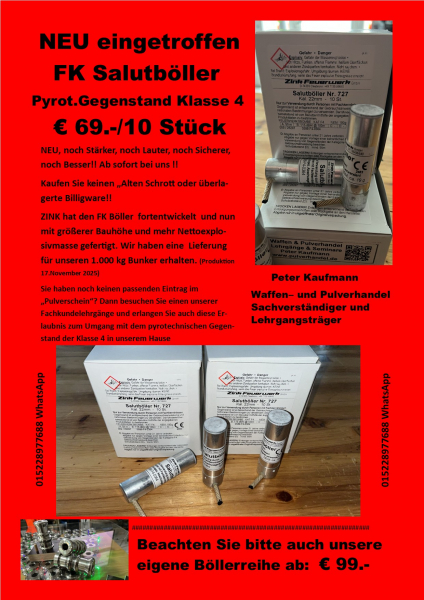 Beachten Sie bitte auch unsere eigene Böllerreihe ab: € 99.-