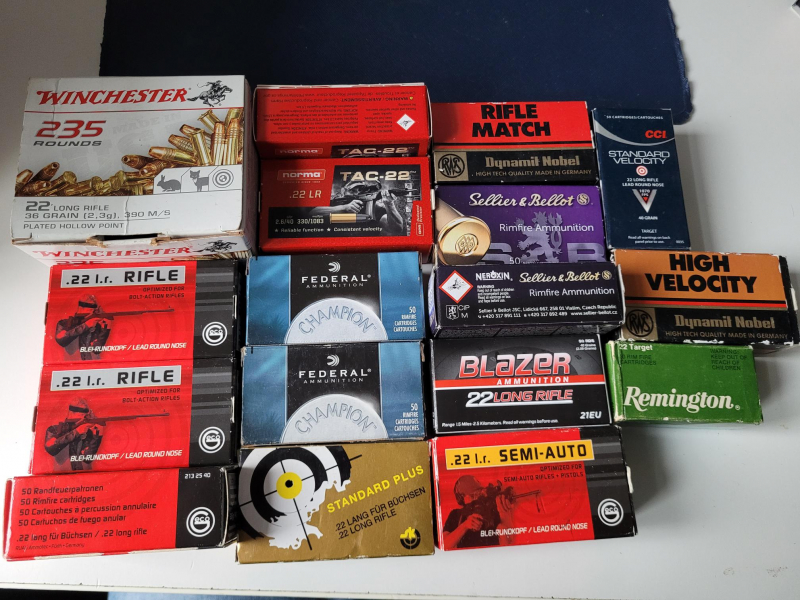 Sie bieten hier auf verschiedene Sorten von Munition 22 lr. Ich habe diese zu Testzwecken geschossen um die beste Munition für meine Waffe zu ermitteln. Folgendes ist vorhanden. Genaues bitte den Bildern entnehmen. Geco 22 lr Norma Tac 22 Federal SK Standard Plus Geco 22 lr Semi Auto CCI Blazer 22 lr Remington 22 lr Target S u B Standard CCI Standard Winchester 22 lr HP DN Rifle Match DN High Velocity Privat Auktion keine Rücknahme oder Garantie. Abholung bevorzugt. Versand wird vom Käufer getragen und je nach Region berechnet.