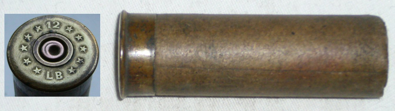 Angeboten wird 1 leere, ungebrauchte Schrothülsen Kal. 12. Eine frühe Fertigung von Louis Bachmann in Brüssel mir erhabenem Stempel. Diese Hülse lagerte auf dem offenen Dachboden der Büchsenmacherei ERDELT in Neustadt/Haardt (Weinstraße). 100 Jahre haben eine Menge Schmutz hinterlassen, der noch nicht ganz entfernt ist.