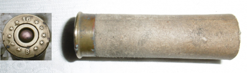 Angeboten wird 1 leere, ungebrauchte Schrothülsen Kal. 16. Eine frühe Fertigung von Louis Bachmann in Brüssel mir erhabenem Stempel. Diese Hülse lagerte auf dem offenen Dachboden der Büchsenmacherei ERDELT in Neustadt/Haardt (Weinstraße). 100 Jahre haben eine Menge Schmutz hinterlassen, der noch nicht ganz entfernt ist.